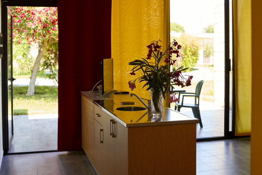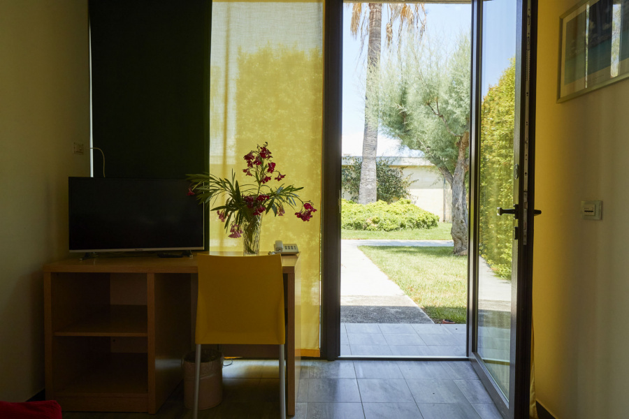 Il villaggio, immerso nel verde dista soli 300 metri dall’ampia spiaggia di sabbia con fondale dolcemente digradante.