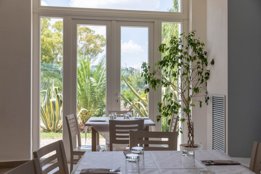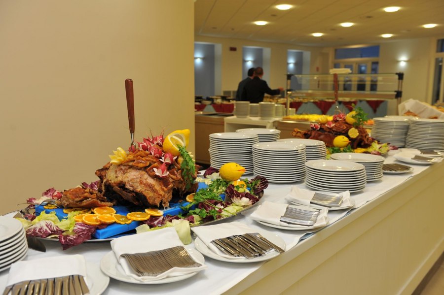 Ristorante con sala interna climatizzata e veranda esterna, con servizio a buffet e tavolo assegnato per tutta la durata del soggiorno. Durante la settimana sono previste una cena tipica e una cena elegante.