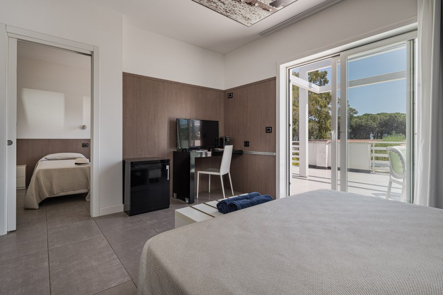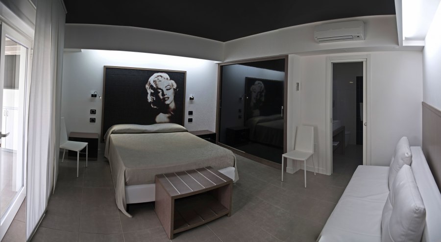 La sistemazione in camere Garden e Hollywood prevedono: macchina per caffè espresso in camera con una cialda per adulto al giorno, prima fornitura di 2 teli mare per camera, prima fornitura minibar (2 bottigliette di acqua, 4 bibite, 2 analcolici, 1 snack salato, 1 snack dolce), fornitura giornaliera di 2 bottigliette di acqua. Inoltre per la sistemazione in camera Hollywood è prevista l’assegnazione della seconda fila in spiaggia, mentre per la Suite Hollywood in prima fila.