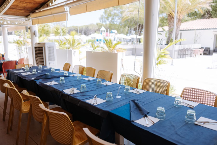 Ristorante, pizzeria, 2 bar di cui uno nella terrazza principale e uno in spiaggia (orari di apertura a discrezione della direzione), piscina con zona per bambini, piscina per bambini da 0 a 60 cm, campo da tennis in erba sintetica, campo da calcetto di nuova generazione, beach volley, campo da beach tennis, campo da beach soccer, campo da padel, ping-pong,