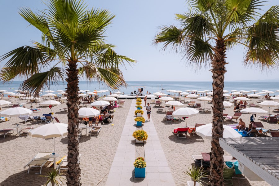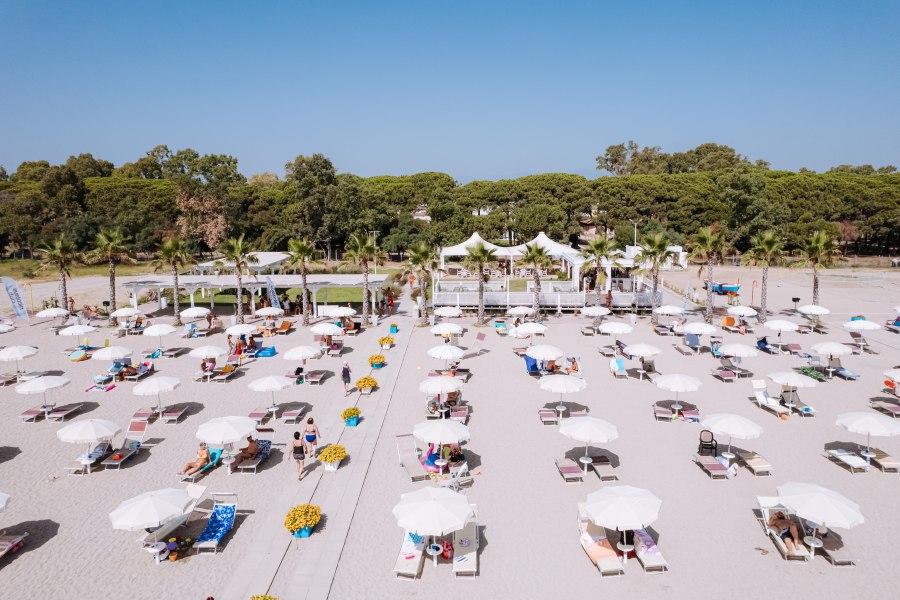 Include: servizio spiaggia con 1 ombrellone e 2 lettini a partire dalla terza fila assegnato per tutta la durata del soggiorno (prima e seconda fila a pagamento), utilizzo della piscina con zona solarium attrezzata, area giochi per bambini, animazione diurna e serale per adulti e bambini, utilizzo diurno dei campi sportivi, corsi collettivi sportivi.