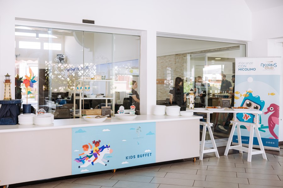 Biberoneria: locale adiacente al ristorante, aperto durante l'orario dei pasti con assistenza di personale dedicato, attrezzato con microonde, scaldavivande, frullatore, frigo, lavello e seggioloni. A disposizione dei più piccoli: pastine, brodi, passati, omogeneizzati (carne, pesce, frutta), frutta fresca, biscotti, tisane, succhi di frutta, yogurt, latte fresco (non in polvere). Fuori dall'orario dei pasti, a disposizione presso il ricevimento, latte, biscotti e scaldabiberon.
