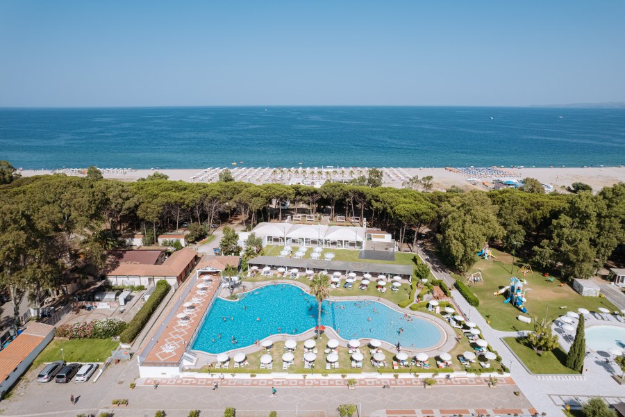 Ristorante, pizzeria, 2 bar di cui uno nella terrazza principale e uno in spiaggia (orari di apertura a discrezione della direzione), piscina con zona per bambini, piscina per bambini da 0 a 60 cm, campo da tennis in erba sintetica, campo da calcetto di nuova generazione, beach volley, campo da beach tennis, campo da beach soccer, campo da padel, ping-pong, tiro con l'arco, minibasket, palestra all'aperto, canoe, SUP e pedalò previa disponibilità, area giochi al coperto con playground, spray park per bambini con giochi e scivoli d'acqua, ascensore nel corpo principale, parcheggio interno non custodito.