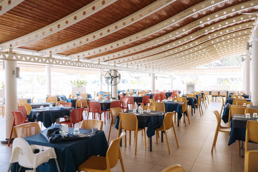 La formula prevede pensione completa (colazione, pranzo e cena) con bevande incluse ai pasti (acqua, vino della casa, birra, coca cola e aranciata alla spina). Presso il bar centrale, dalle 8:00 alle 24:00, e presso il bar spiaggia, secondo gli orari di apertura, consumo illimitato di acqua naturale, coca cola, aranciata, gassosa, tè freddo, succo di frutta e vegan mix, il tutto servito in bicchiere. Cocktail di benvenuto alcolico e analcolico con snack. Snack dolce, dalle 14:00 alle 16:00, servito presso il bar centrale.