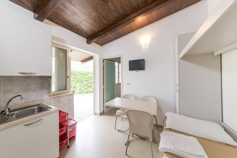 48 appartamenti in formula residence, tutti al piano terra e dotati di ingresso indipendente, aria condizionata autonoma, veranda esterna, piccolo giardino, angolo cottura e servizi con doccia. Sono disponibili nelle seguenti tipologie: Bilocali, di dimensioni contenute, fino a 4 posti letto (massima occupazione 3 adulti + 1 bambino fino a 14 anni), con ingresso che si apre direttamente sul soggiorno con angolo cottura attrezzato e divano letto doppio estraibile o a castello e camera matrimoniale, ampia veranda e angolo cottura esterno; Trilocali, fino a 6 posti letto, con ingresso che si apre direttamente sul soggiorno con angolo cottura attrezzato e divano letto doppio estraibile, 2 camere matrimoniali, ampia veranda e angolo cottura esterno. Disponibilità di appartamento trilocale per persone con disabilità.
