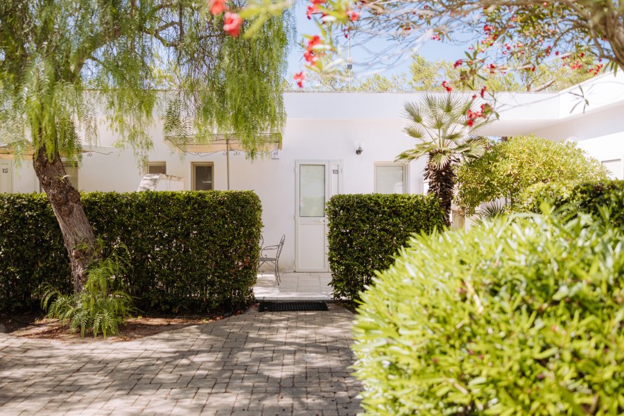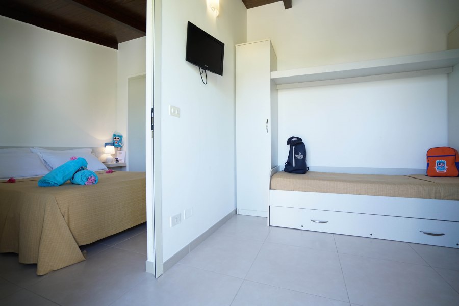 40 camere in formula hotel, con arredi semplici e tutte al piano terra, dotate di servizi con doccia e asciugacapelli, TV, aria condizionata autonoma, minifrigo e veranda attrezzata. Si suddividono in: Classic, di dimensioni contenute, fino a 3 posti letto situate nella zona centrale del villaggio; Family, di dimensioni contenute, fino a 4 posti letto (massima occupazione 3 adulti + 1 bambino fino a 14 anni), con ingresso che si apre direttamente su una camera con divano letto doppio estraibile o a castello e camera matrimoniale, split aria condizionata in camera, TV in soggiorno.