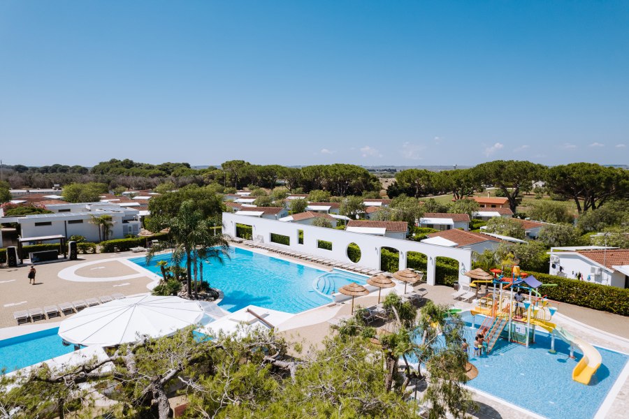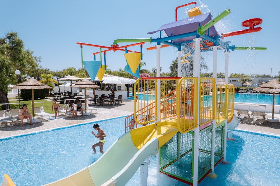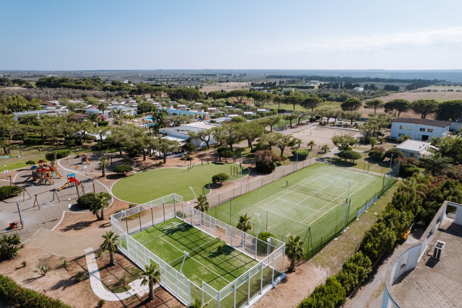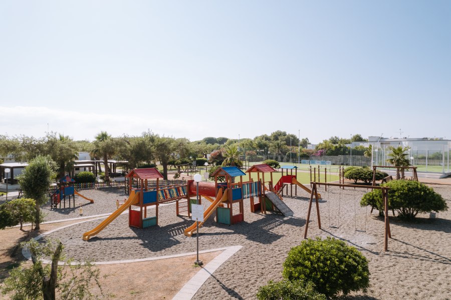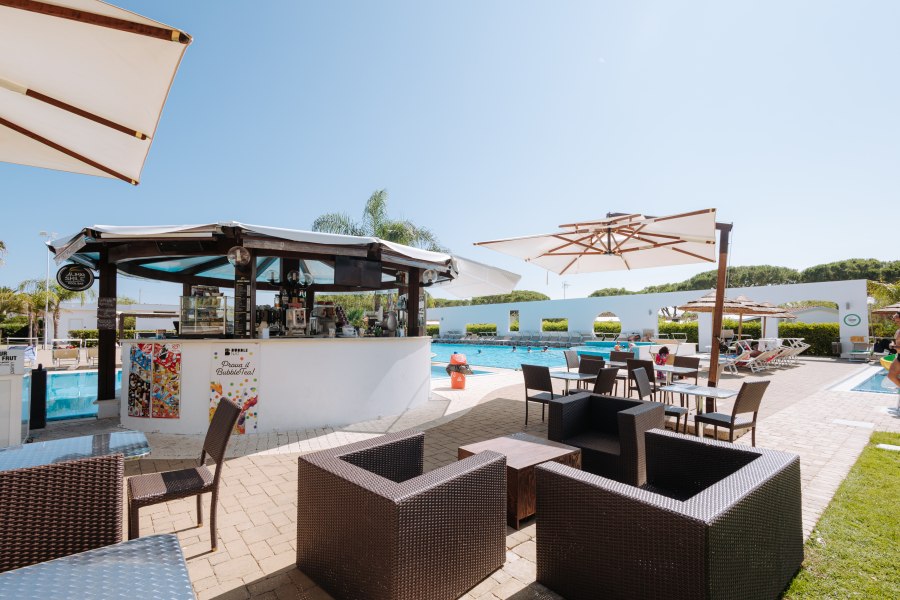Ristorante, 2 bar di cui uno in piscina, piscina con fondale digradante, piscina per bambini con scivoli, campo da tennis e campo da calcetto in erba sintetica, campo da padel, campo da beach volley, area giochi per bambini, area fitness all'aperto, minigolf, parcheggio interno non custodito.
