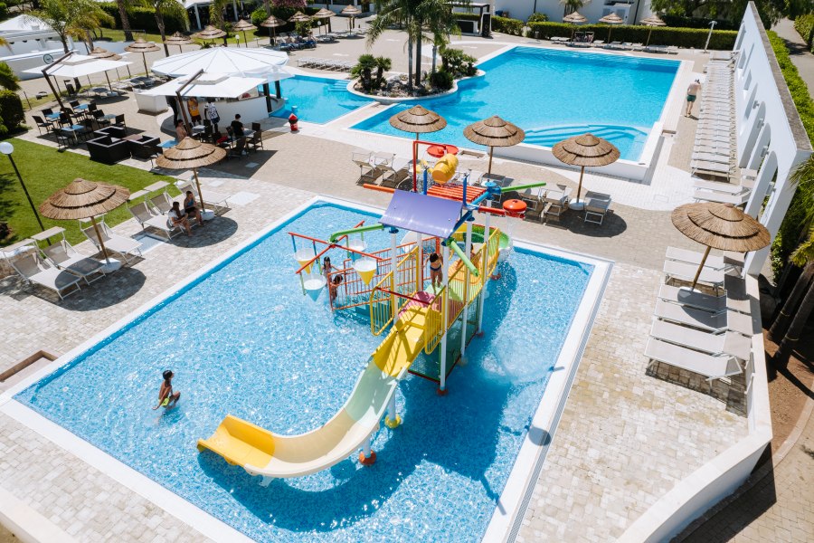 Include: servizio spiaggia con 1 ombrellone e 2 lettini per unità abitativa a partire dalla quinta fila con assegnazione giornaliera (prime file a pagamento, disponibilità da richiedere in fase di prenotazione e pagamento in loco), navetta da e per la spiaggia, utilizzo della piscina con zona solarium attrezzata, animazione diurna e serale per adulti e bambini, corsi sportivi collettivi, uso diurno dei campi sportivi (esclusi quelli a pagamento).