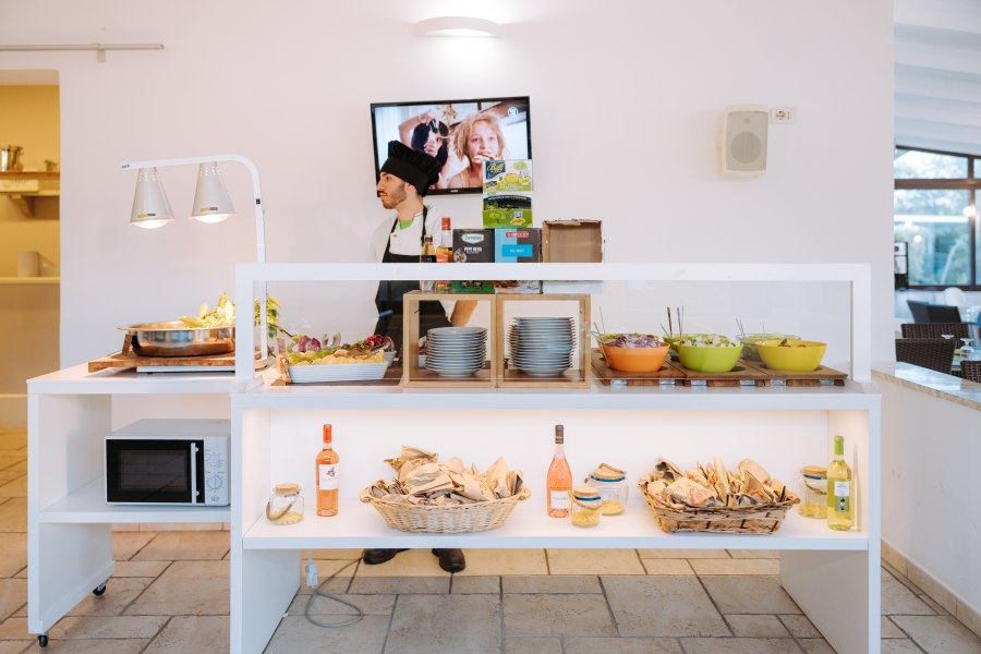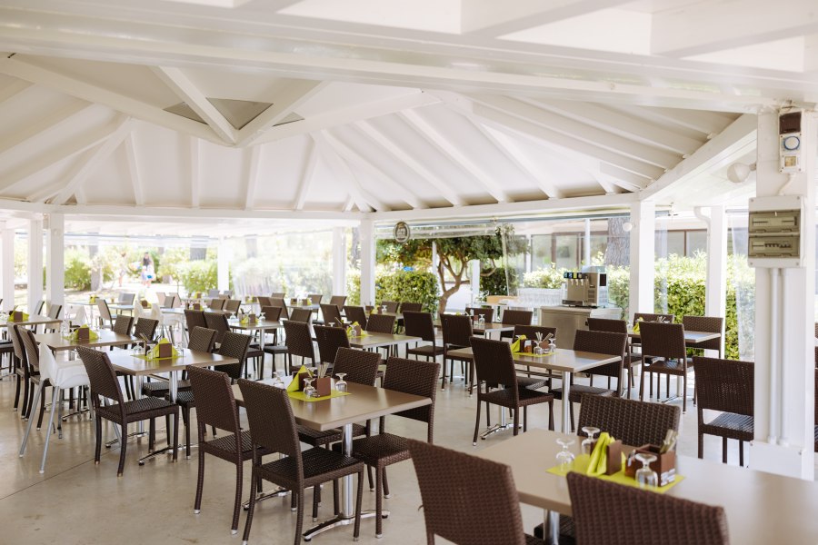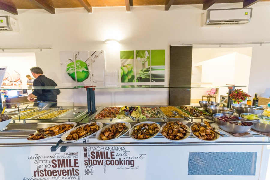 Per i clienti che scelgono la formula hotel, ristorante a buffet con sala climatizzata e veranda all’aperto. Durante la settimana è prevista una cena tipica.