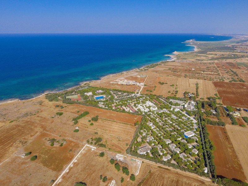 Situato direttamente sul mare, dal cui è separato solo da una pineta appartenente al villaggio, la struttura con 160 unità abitative si compone di tre aree: residence, camping e formula hotel. Adatto alle coppie e alla famiglia, gode di una posizione straordinaria a pochi minuti dalla riserva naturale di Torre Guaceto e dalla "bianca" Ostuni. Dista circa 20 km dall’aeroporto di Brindisi.