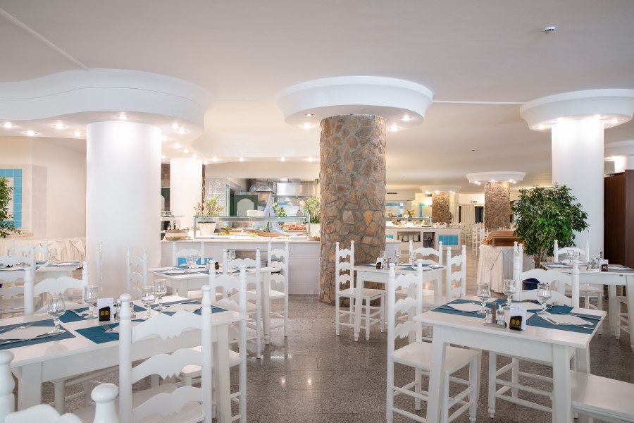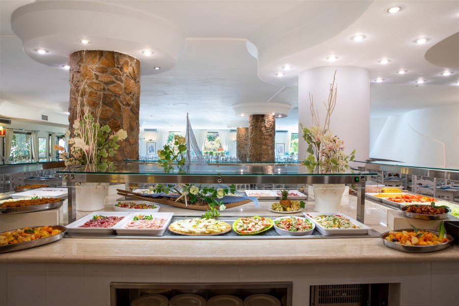 Ristorante con sala climatizzata e servizio a buffet, tavolo assegnato per tutta la durata del soggiorno. Durante la settimana sono previste una “serata sarda” con cucina tipica regionale e una “serata del pescatore” con piatti a base di pesce (sempre garantita una soluzione alternativa di carne o vegetariana).