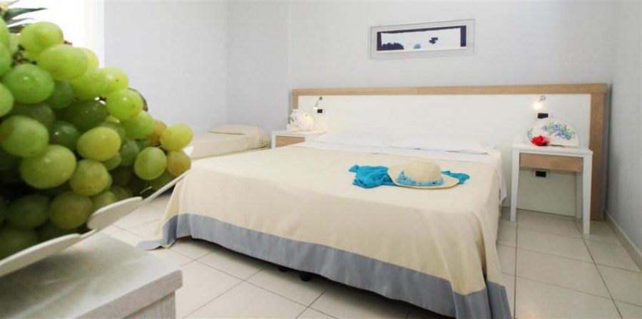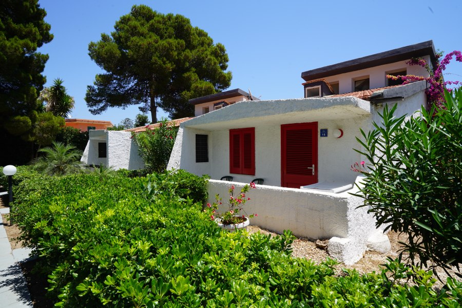 128 camere fino a 4 posti letto sono ubicate nel corpo centrale, dove si trova la reception. Di dimensioni contenute, con arredo semplice, sono suddivise tra primo e secondo piano, alcune con vista mare (con supplemento), piccolo balconcino o in alcuni casi zona esterna ad uso non esclusivo. Le camere quadruple sono dotate di letto matrimoniale e letto a castello.