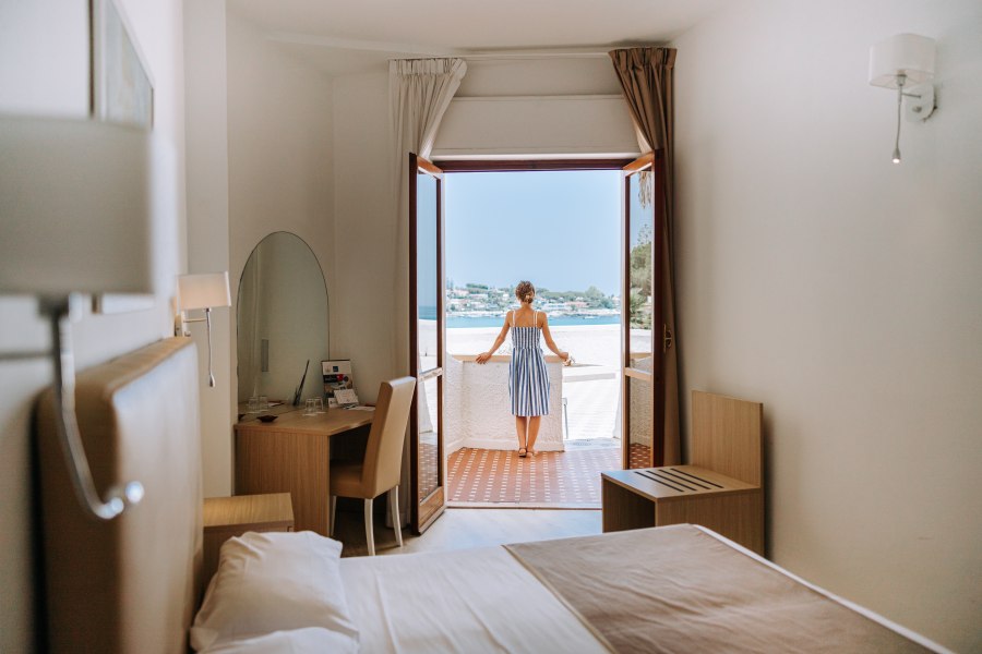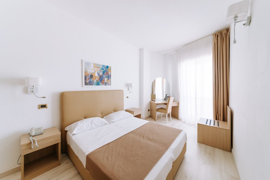 Tutte le camere dispongono di aria condizionata, minifrigo, TV, cassetta di sicurezza, servizi con doccia e asciugacapelli, balcone. Sono disponibili camere doppie per persone con disabilità nel corpo centrale.