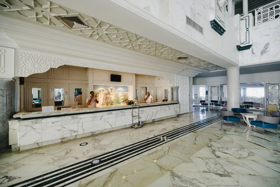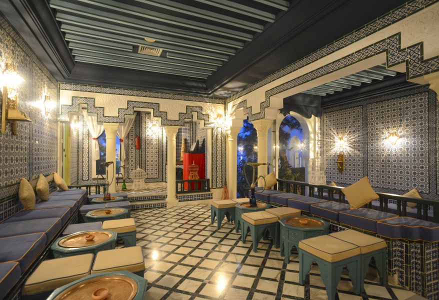 Ristorante principale La Blue, BBQ El Sayadines, Ristorante Tusinino Epices et Delices e 6 bar, Rendez Vous, Pool Bar, Beach bar Sable d'Or, Wine bar Bacchus, Cafè Moresco El Machmoum, nightclub Venus. 4 piscine di cui una principale di 1800 mq, una in zona relax di 1000 mq, una di 250 mq e una per bambini, acquapark (aperto dal 01