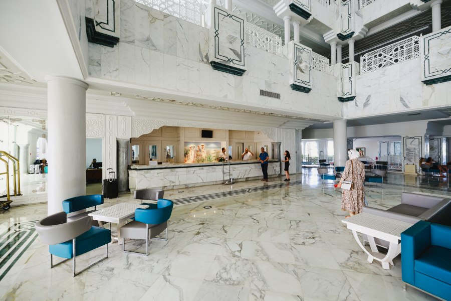 Ristorante principale La Blue, BBQ El Sayadines, Ristorante Tusinino Epices et Delices e 6 bar, Rendez Vous, Pool Bar, Beach bar Sable d'Or, Wine bar Bacchus, Cafè Moresco El Machmoum, nightclub Venus. 4 piscine di cui una principale di 1800 mq, una in zona relax di 1000 mq, una di 250 mq e una per bambini, acquapark (aperto dal 01 giugno al 31 ottobre), 2 campi da tennis, un campo da calcetto, ping pong, beach volley, tiro con l’arco, mini golf, bocce, discoteca, anfiteatro esterno.