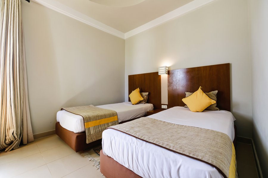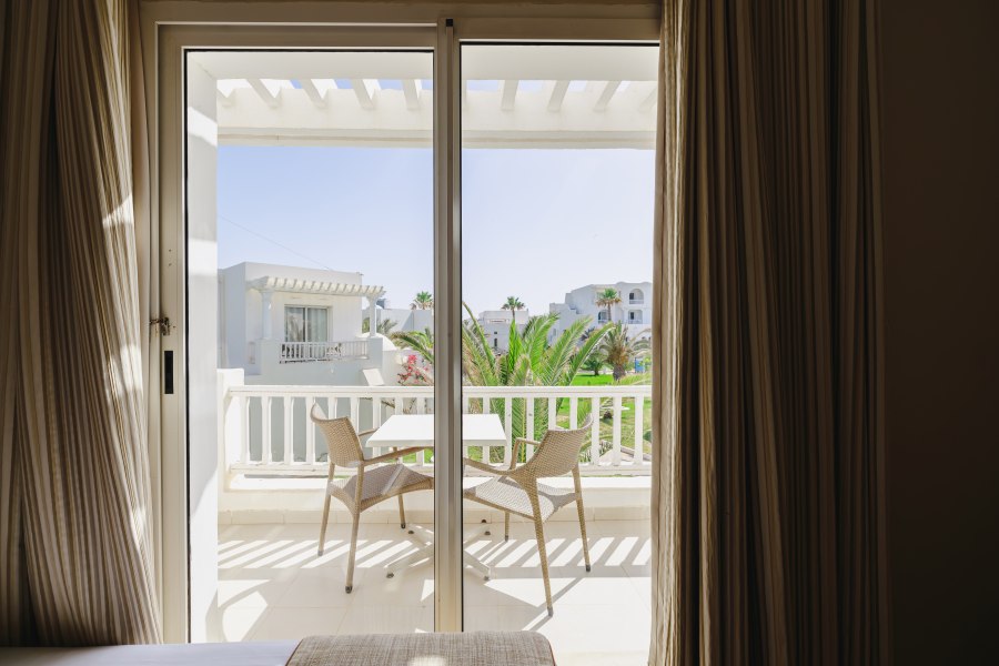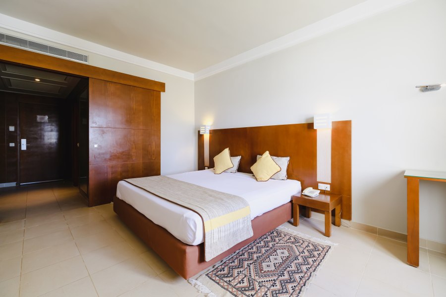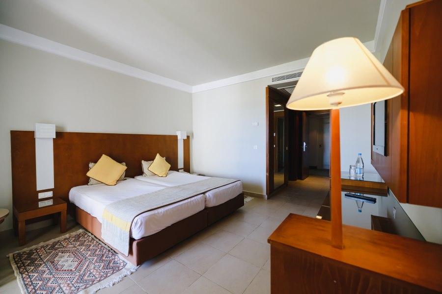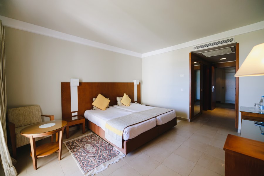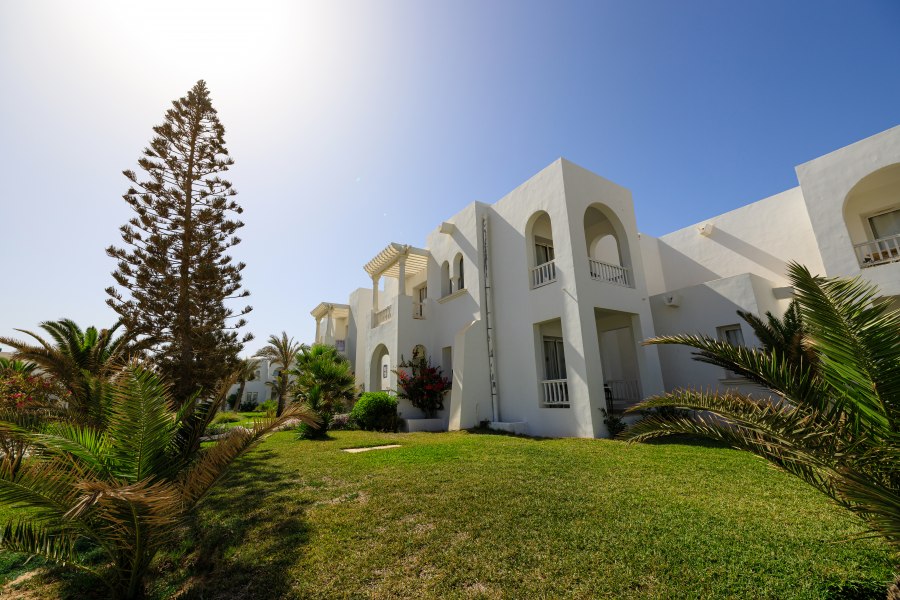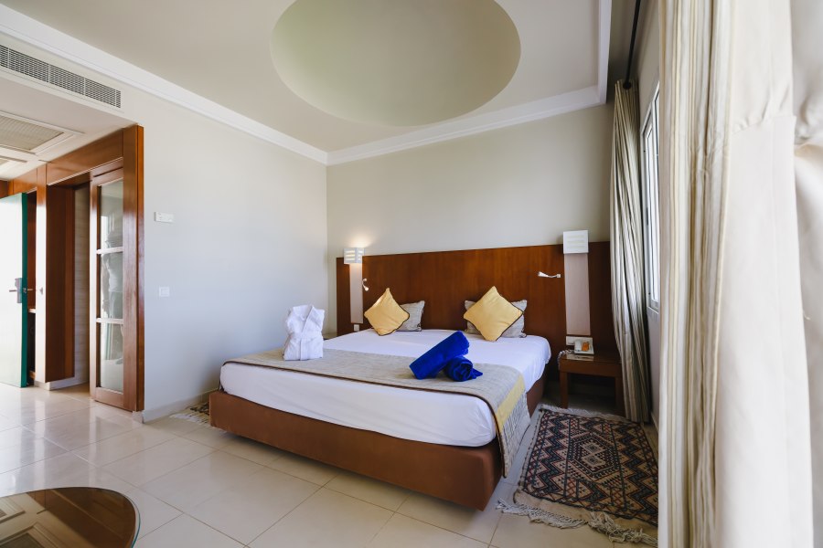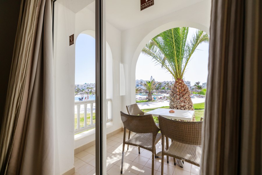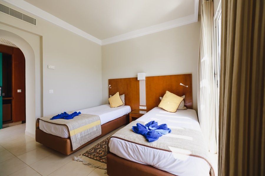 354 camere, ben arredate e tutte dotate di servizi con vasca, asciugacapelli, aria condizionata, telefono, TV Sat, cassetta di sicurezza (a pagamento), minifrigo, balcone o terrazzo. Si suddividono in Classic Vista Giardino e Vista Mare nel corpo centrale 2 piani con occupazione massima 3 persone, Menzel superior (tipiche costruzioni della tradizione djerbina) con occupazione massima 3 persone, Menzel Family, costituite da 2 camere separate da una porta scorrevole, con occupazione massima 4 persone e Bungalow con occupazione massima 2 persone, posizionati a destra del corpo centrale, in zona tranquilla, piscina relax e spiaggia a loro dedicata. Frigobar pieno all'arrivo, telo mare e cassetta di sicurezza in dotazione senza cauzione.