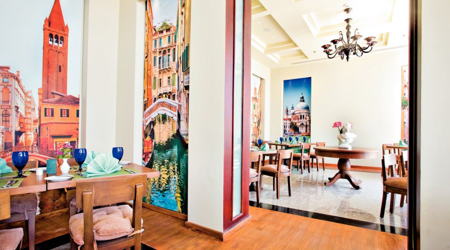 Compreso nel trattamento di All Inclusive, un elegante ristorante internazionale, l'Horizon, con la possibilità di accomodarsi sia all'interno che all'esterno, dove poter usufruire dei pasti principali serviti a buffet; 7 sono i ristoranti à la carte dove proseguire il viaggio sensoriale all'insegna del gusto: il ristorante Manzoku, specializzato in sapori asiatici; Basilico, per gli affezionati ai sapori italiani; il Gamila e