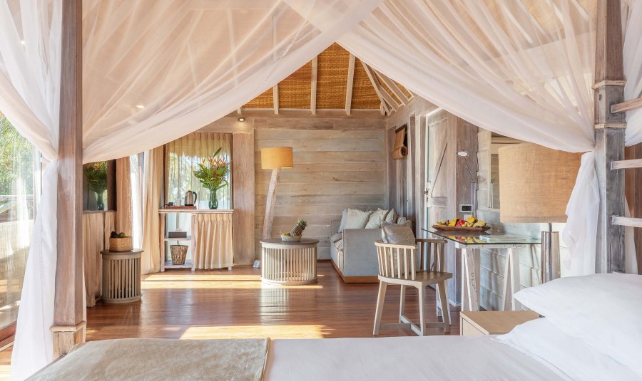 Dispone di 124 camere, suddivise in sistemazioni vista giardino, 40 con terrazzo, 7 fronte mare, 10 suite e 7 ville con piscine e giardini privati: tutte arredate con il massimo livello di comfort. Dispongono di asciugacapelli, televisore via satellite, telefono, aria condizionata, minibar (con acqua e succhi di frutta all’arrivo dei clienti: rifornimento giornaliero con supplemento), cassetta di sicurezza, bollitore per tè e caffè, e connessione ad internet (servizio a pagamento). Per gli ospiti più esigenti il programma e l’area esclusiva “The Level” che offre una scelta di servizi progettati per creare un ambiente unico e personalizzato. I bungalow strategicamente sopraelevati tra le palme, con una magnifica vista mare sopra Gabi Beach, sono un’ottima scelta per i viaggiatori che cercano un tocco di lusso, con una terrazza extra di 20 m2, che offre agli ospiti un’eccezionale vista sul mare. Sono inclusi nel “The Level” reception privata e servizio concierge, oltre a colazione à la carte nella lounge dedicata, accesso al bar The Level con una grande varietà di liquori e bevande non alcoliche di marca premium, accesso all'esclusiva piscina a sfioro affacciata sull'Oceano Indiano, accesso alla spiaggia privata, prenotazione prioritaria della cena in tutti i ristoranti à la carte, servizio in camera e accesso all’area business dedicata.