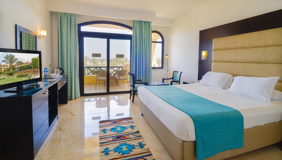 271 camere disposte su 3 piani e raggiungibili con ascensore. Sono tutte dotate di servizi, aria condizionata, asciugacapelli, telefono, TV Sat, cassetta di sicurezza, bollitore, minifrigo rifornito all’arrivo di due bottiglie di acqua naturale (rimpiazzate giornalmente), la maggior parte con balcone o terrazzo. Si suddividono in camere Standard, camere Bungalow (con supplemento) che hanno lo stesso stile delle camere Standard con letto king size e vista sul mare e camere Superior (con supplemento), tutte possono ospitare fino a quattro posti letto (2 adulti e 2 bambini).
