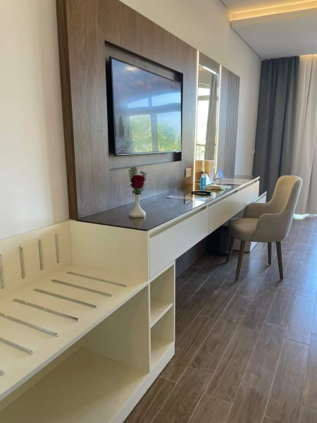 L’Hotel dispone di 331 camere, molto semplici, dall'arredamento basico, tutte dotate di aria condizionata autonoma, TV Led, minibar, Wi-Fi, telefono, servizi privati, cassetta di sicurezza, asciugacapelli, balcone o terrazza. Si dividono in camere Classic Garden View (le quadruple hanno due letti singoli e due extra bed/lettini) , Superior Partial Sea View, Marine Club Panoramic Sea Vew, Deluxe Beach Front e Premium, tutte possono ospitare massimo 3 adulti e un bambino.