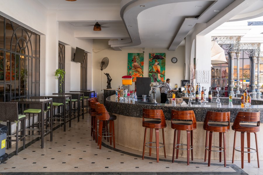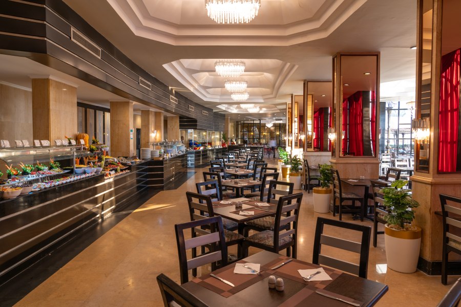 la formula prevede colazione e cena a buffet, presso il ristorante principale Palm, che offre una varietà di piatti egiziani e internazionali con un angolo dedicato ai bambini, mentre il pranzo è servito a buffet direttamente presso il ristorante sulla spiaggia. Oltre ai pasti principali, gli ospiti possono gustare snack mattutini e pomeridiani (ad orari prestabiliti) che includono pizza, shawarma, burger, pasta espressa e patatine fritte. Per arricchire l'offerta culinaria, la formula include la possibilità di consumare una cena a la carte una volta per soggiorno, previa prenotazione, scegliendo tra la cucina mediterranea del ristorante Mythos o le specialità egiziane della Grill House. Il servizio bevande è garantito 24 ore su 24 presso il Night & Day Bar situato nella lobby, a cui si affiancano il bar in spiaggia La Plage e il bar The View in piscina, entrambi aperti durante il giorno. Completano l'offerta una gelateria con cinque gusti differenti nel pomeriggio e un Coffee Shop che propone una vasta selezione di pasticceria e caffè arabo, oltre a sandwich leggeri e macedonie disponibili fino a mezzanotte.