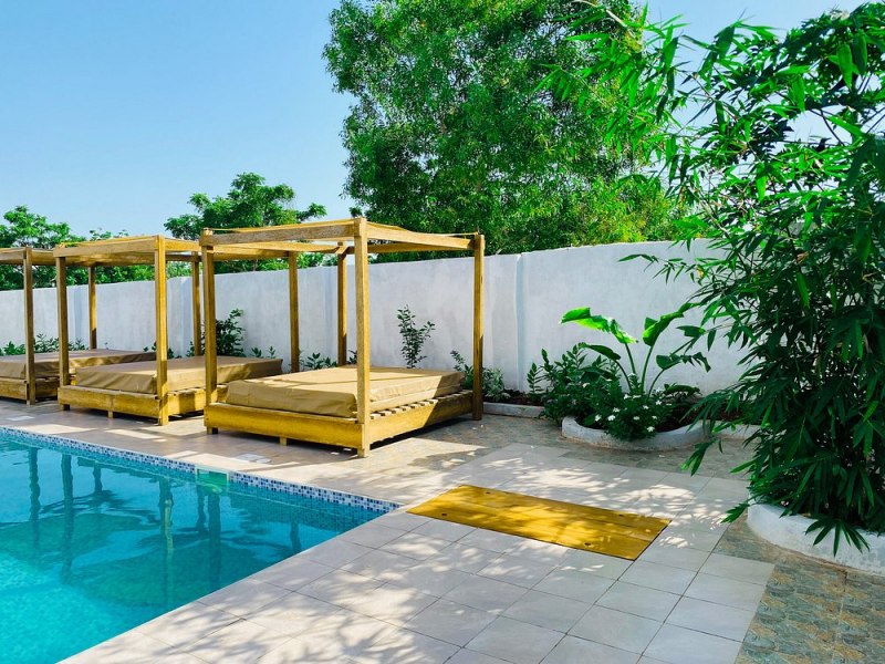 Trattandosi di una struttura intima e di nicchia, dispone di poche sistemazioni esclusive (camere nella casa principale o ville indipendenti). Le camere sono caratterizzate da un design minimalista-etnico con arredi artigianali locali e letti a baldacchino. Le categorie includono: Ocean View Room, Garden Room e la Master Suite con vista panoramica a 360°. Tutte dotate di aria condizionata (o ventilazione naturale studiata architettonicamente), Wi-Fi, cassaforte, set di cortesia biologico, ampi bagni con docce "open-air" e verande private.