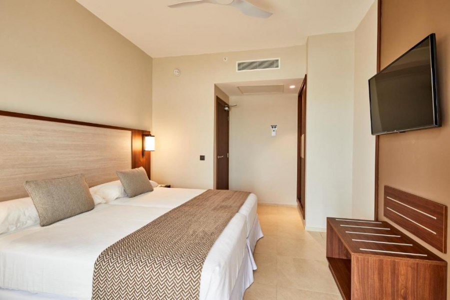 L’hotel è composto da due edifici, il principale con 375 camere il secondo con 93 camere. Sistemazioni in stile contemporaneo con ogni confort: televisore satellitare, aria condizionata, ventilatore, cassetta di sicurezza, minibar, divanetto, balcone, wi-fi gratuito, telefono, bagno con doccia e asciugacapelli. Le camere Superior sea view e Double room sea view sono vista mare, le Family dispongono di due camere e possono ospitare un massimo di 6 adulti.