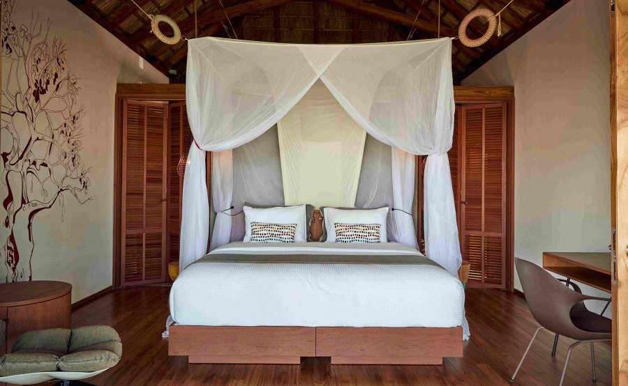 La struttura dispone di 56 sistemazioni tra bungalow, suite e ville, progettate per integrare perfettamente gli spazi interni con ampie terrazze esterne. Gli ospiti possono scegliere tra i Bungalow Garden o Sea View, immersi nei giardini tropicali o affacciati sull'oceano, e le Suite dotate di zona giorno separata e, in alcune tipologie, di vasca idromassaggio privata. Per il massimo del lusso sono disponibili le Ocean Front Villas, situate fronte spiaggia e dotate di piscina privata e servizio maggiordomo. Tutte le unità sono equipaggiate con aria condizionata eco-friendly, Wi-Fi gratuito, TV satellitare, minibar, cassaforte, set per tè e caffè e docce tropicali all'aperto.