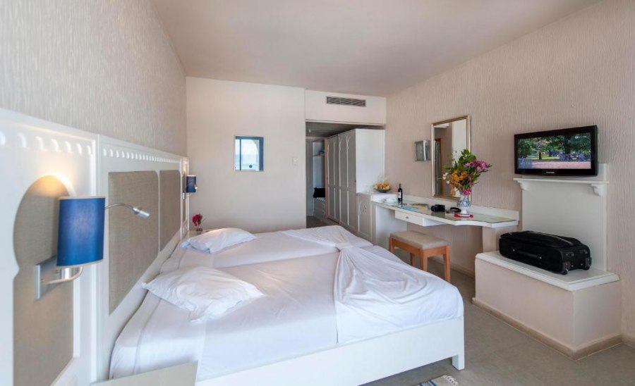 La struttura dispone di circa 326-356 camere distribuite in diversi blocchi (massimo 3 piani), rinnovate in uno stile moderno. Tutte dotate di: aria condizionata centralizzata (solitamente attiva da metà giugno a metà settembre), TV LCD satellitare, telefono, frigobar, cassaforte e balcone. Disponibili camere standard (con vista giardino o vista mare laterale) e diverse tipologie di camere familiari (incluse le Family Room Superior con una camera da letto in più).
