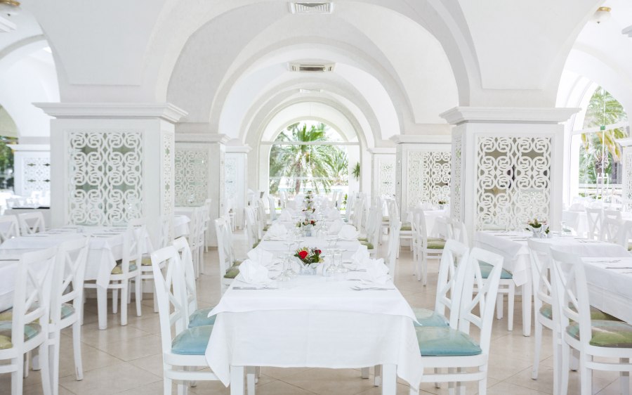 Il trattamento prevede colazione, tarda colazione (fino alle 11.30 presso il Lobby Bar), pranzo, cena e snacks (presso il Pool bar dalle 12:00 alle 17:00) con servizio a buffet presso il ristorante principale. Selezione di bevande alcoliche e analcoliche locali e in bicchiere presso i vari bar, in orari prestabiliti; il Lobby Bar è aperto dalle 9:00 a mezzanotte. A pagamento: quanto non specificato nella voce "prevede", bevande alcoliche e analcoliche di importazione e in bottiglia. Il trattamento di AL segue orari prestabiliti secondo politica della struttura che possono essere suscettibili di variazioni in base alle esigenze.