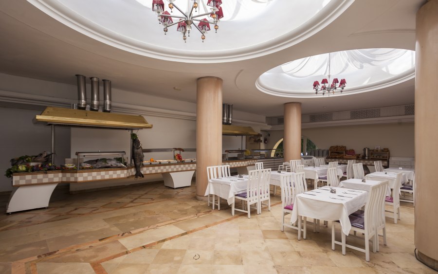 Il trattamento prevede: colazione, pranzo e cena serviti a buffet presso il Ristorante Principale; late breakfast presso lo snack bar Palmeraie; selezione di snacks sempre presso lo stesso bar dalle 15:00 alle 17:00; 2 cene tematiche sempre servite a buffet 2 volte a settimana; bevande alcoliche e analcoliche locali, alla spina e servite in bicchiere. Una volta a soggiorno ingresso in sauna e all'hammam, con prenotazione. A pagamento: quanto non specificato nella voce "prevede", bevande alcoliche e analcoliche di importazione e in bottiglia, caffè moresco "Safsaf". Il trattamento di AI segue orari prestabiliti secondo politica della struttura e sono suscettibili di variazioni per eventuali esigenze.