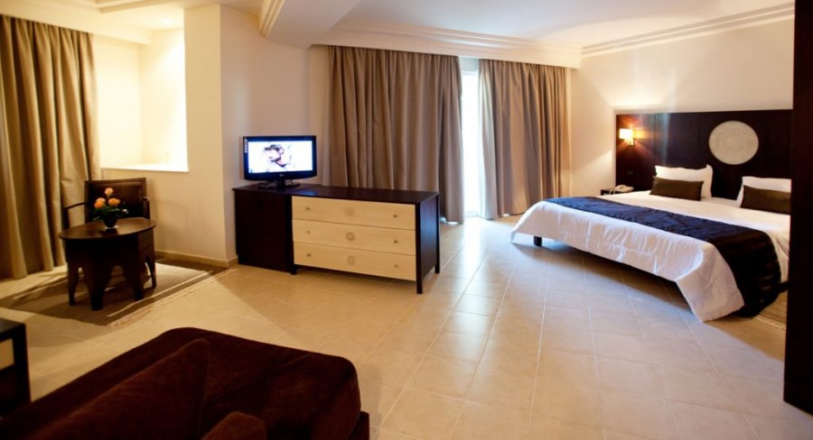 Dispone di 225 camere che si suddividono in Standard di 34 mq (max 4 adulti + 1 infant), arredate in stile moresco e situate in 3 edifici separati a due piani e immersi nel verde, in Superior di 30/40 mq, (max 4 adulti + 1 infant) arredate con design moderno, disposte su tre piani nel corpo principale del resort con accesso diretto al ristorante, la piscina interna, SPA, hall e bar. Tutte dispongono di patio o balcone, di telefono, tv sat, aria condizionata con controllo autonomo, mini-frigo, cassetta di sicurezza disponibile in tutte le camere, a pagamento per le Standard. servizi con vasca o doccia e asciugacapelli. L'Hotel è completamente attrezzato per ospitare persone con mobilità ridotta. Camere su richiesta.
