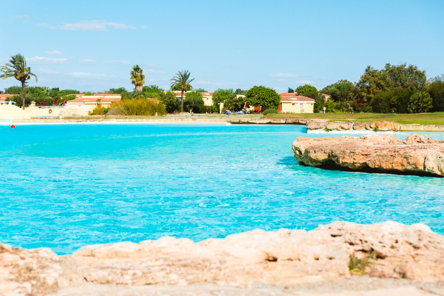 La spiaggia privata, a ridosso della macchia mediterranea, dista circa 900 metri a piedi dall’hotel e dalle residenze: una distesa di sabbia fine bagnata dalle acque cristalline dello Ionio, premiata con la Bandiera Blu 2022. Fondale marino sabbioso a profondità graduale, ideale per i bimbi e per lunghe e salutari passeggiate. La spiaggia è ben collegata da un efficiente servizio di navetta compreso nella tessera club, ma è anche piacevolmente raggiungibile a piedi attraversando la fresca pineta. È attrezzata e fornita di ogni servizio: per ogni camera e appartamento un ombrellone con una sdraio e un lettino.