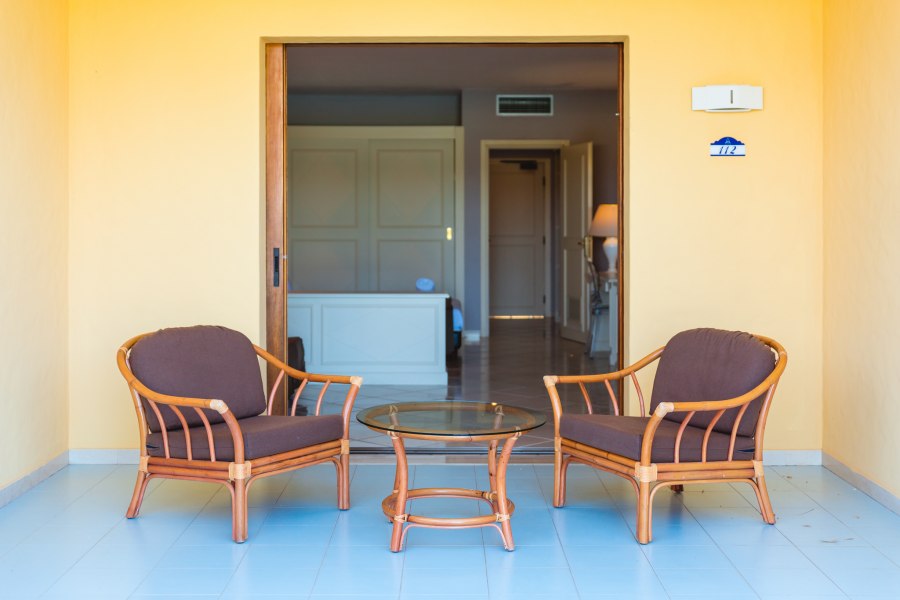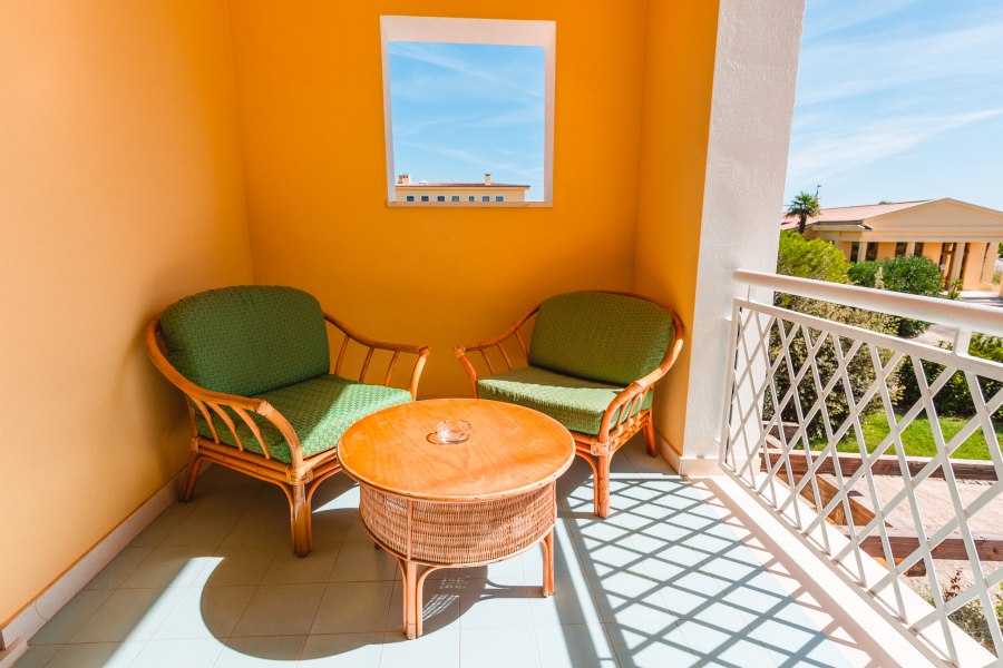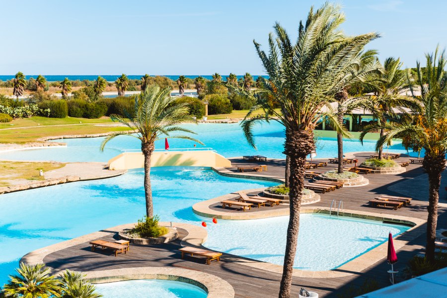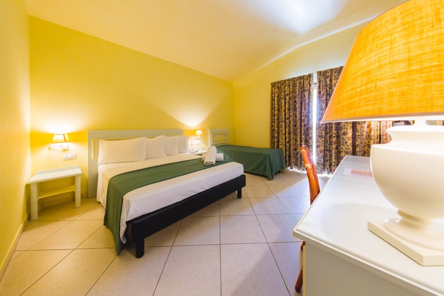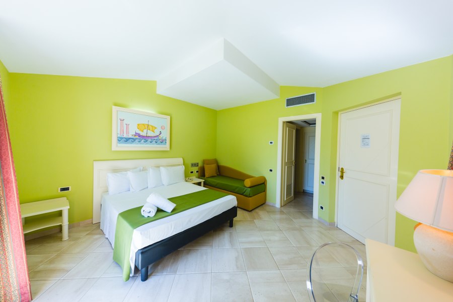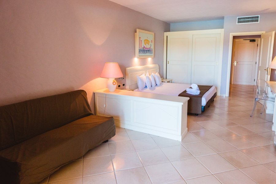 Formula Hotel: tutte le camere sono dotate di servizi privati, aria condizionata centralizzata, TV e cassetta di sicurezza, telefono o collegamento citofonico, patio o terrazzo esterno arredato. La Camera Standard può essere assegnata, in base alla disponibilità e occupazione, in una delle seguenti tipologie: camere doppie e triple ubicate nelle aree adiacenti l’area servizi (disponibili camere comunicanti) o camere da 4 a 6 ospiti (con divano letto) in appartamenti bilocali e trilocali, che si trovano a circa 150-250 metri dall’hotel, ideali per le famiglie più numerose e per chi ama maggiore abitabilità e riservatezza (disponibili bilocali con camera matrimoniale e divano letto in area living o trilocali con una camera doppia aggiuntiva). Camera quadrupla vista piscina: nelle aree adiacenti al corpo centrale e con supplemento. Suite Premium: si tratta di sistemazioni che prevedono camere con ambienti separati, dotate di aria condizionata, TV e cassetta di sicurezza, minibar (riempibile su richiesta e con consumazioni da pagare in loco), bagno con vasca o doccia e asciugacapelli; in questa categoria rientrano anche gli Appartamenti del Porto, ognuno caratterizzato da arredi e colori differenti, con spettacolare vista sul porto: i bilocali dispongono di area living e cucina attrezzata, camera matrimoniale, bagno con doccia e terrazzo arredato; i trilocali dispongono di ulteriore camera con due letti separati, e possono ospitare fino a 6 persone. La tipologia Suite Premium include il pacchetto Premium.