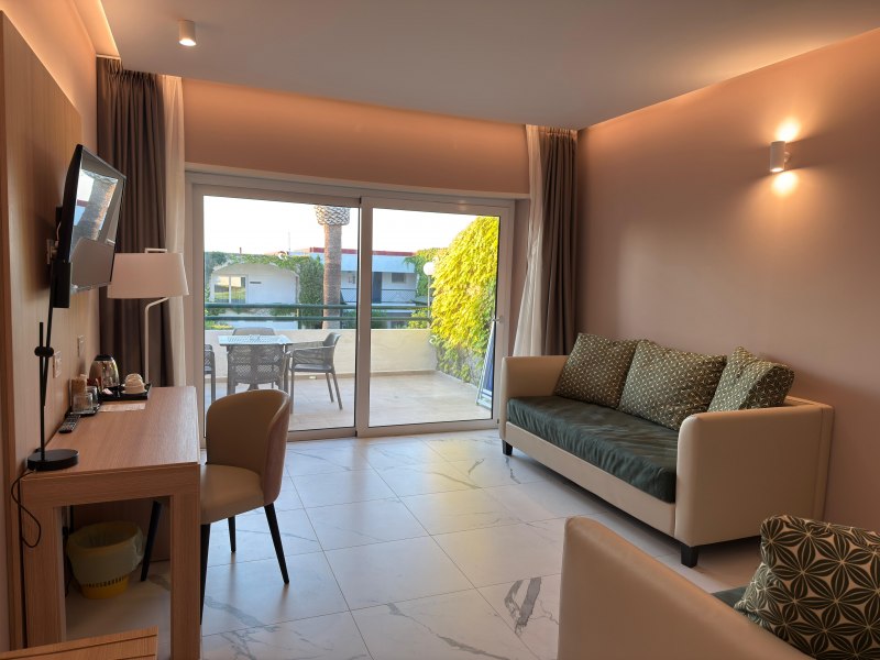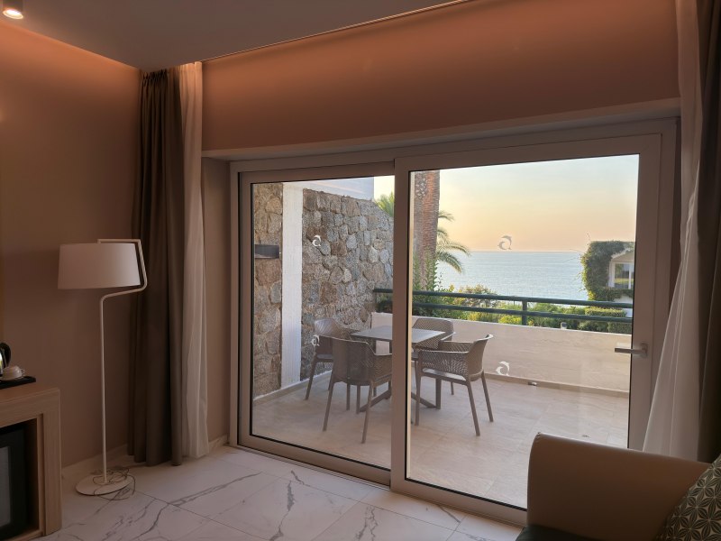268 camere. Tutte dotate di doccia, balcone o terrazza, aria condizionata/riscaldamento, cassaforte, telefono, televisione, minifrigo, asciugacapelli e specchio cosmetico. Si suddividono in Double room Landview, Double room Beachside, Double room sea view, Double room Superior Whirlpool, Standard Dus, Family Room, Junior Suite.