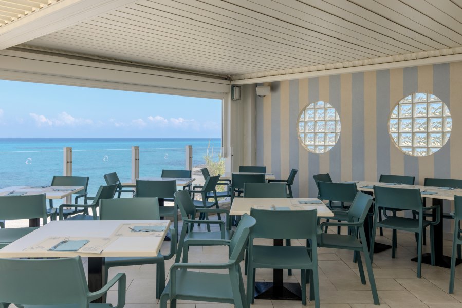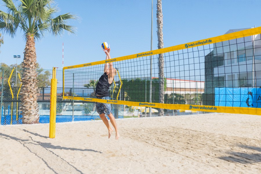 La spiaggia sabbiosa in leggera pendenza, attrezzata con lettini, ombrelloni e un ristorante sulla spiaggia, è facilmente raggiungibile tramite ascensore. Servizio spiaggia con 1 ombrellone e 2 lettini (non prenotabili) inclusi nella quota.