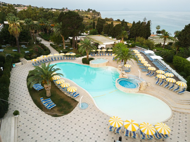 Situato su un altopiano roccioso sopra la spiaggia di Tropea. Il centro storico della città dista solo 1 km, mentre l'aeroporto di Lamezia Terme dista circa 60 km.