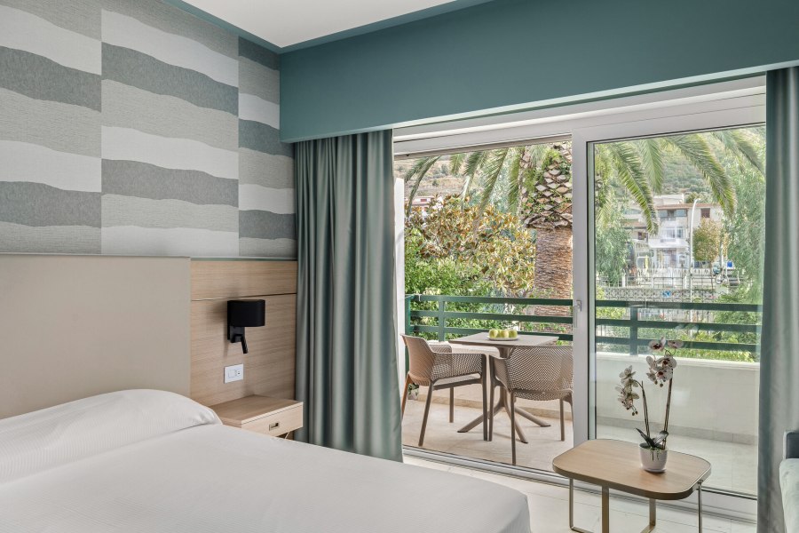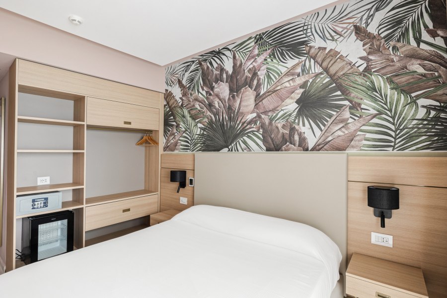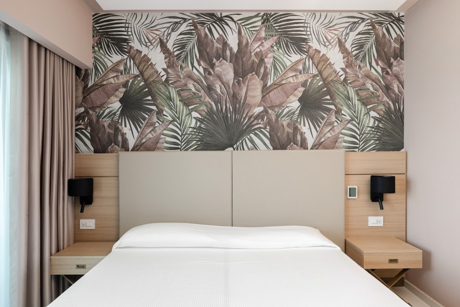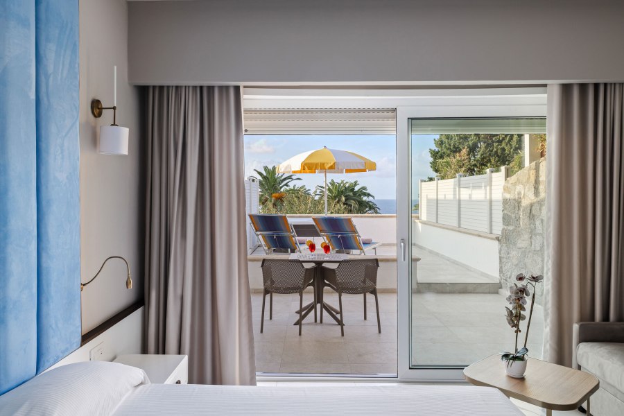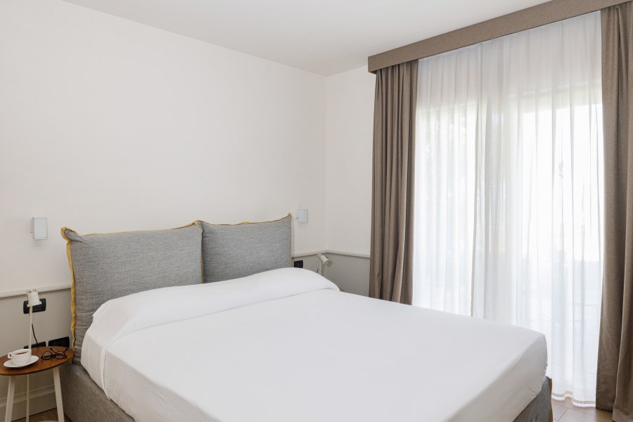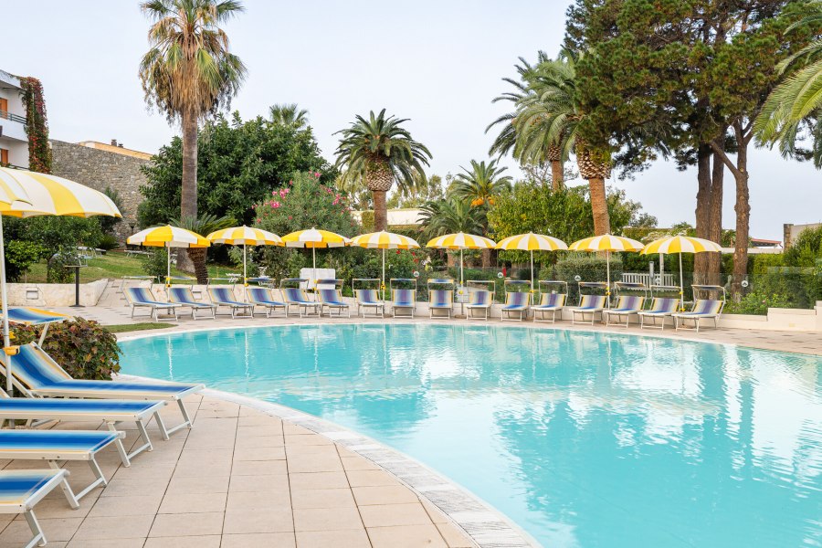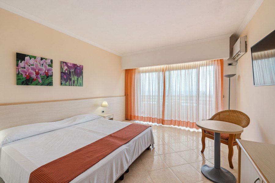 290 camere.Tutte dotate di doccia, balcone o terrazza, aria condizionata/riscaldamento, cassaforte, telefono, televisione, minifrigo, asciugacapelli e specchio cosmetico. Si suddividono in Doppie Corpo Centrale, Vista Giardino; Superior Depandance, Vista Giardino, Vista Mare, Jacuzzi; Junior Suite Jacuzzi, Junior Suite Vista Giardino.