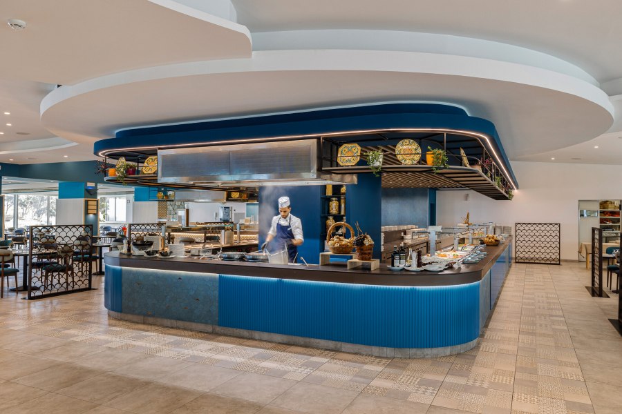 Ristorazione: Ristorante a buffet con postazioni di cucina dal vivo e terrazza esterna Green Soul Food Corner: varietà sana e sostenibile al buffet per tutti i pasti, tutto vegano o vegetariano. Cena di Gala una volta la settimana