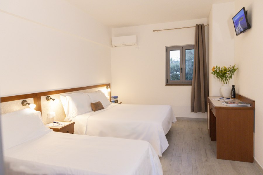 Standard Room 2-3: composte da unico ambiente con letto matrimoniale e letto singolo aggiuntivo e bagno con doccia. Sono situate al primo piano e sono tutte dotate di balcone, accessibili con scale.