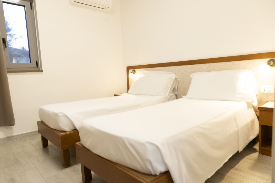 Economy room 1-2: composte da unico ambiente con letto matrimoniale e bagno con doccia. Hanno ingresso indipendente rispetto alla reception e sono dotate di patio esterno o balcone.