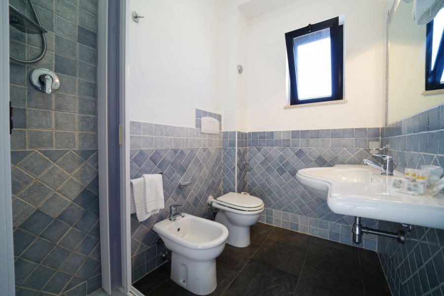 90 camere, dispongono di servizi privati con doccia e asciugacapelli, aria condizionata, minifrigo, tv color solo satellitare e canali Sky, cassetta di sicurezza. Disponibili: camere matrimoniali con possibilità di aggiunta su richiesta di culla; camera 3 letti matrimoniale con aggiunta di letto singolo; camera 4 letti: matrimoniale con l'aggiunta di divano letto a castello o letto a castello per ragazzi fino a 14 anni; per gruppi di amici o nuclei familiari che desiderano una maggiore comodità sono disponibili anche camere comunicanti per 4 o 5 persone con doppi servizi formate da una camera doppia ed una camera con due letti separati o letto singolo e letto a castello ( per ragazzi fino a 14 anni). Le camere dispongono di piccolo patio se al piano terra (generalmente le camere doppie e camere a 4 letti) o con balcone se al primo piano (camere a 3 letti e camere a 4 letti).