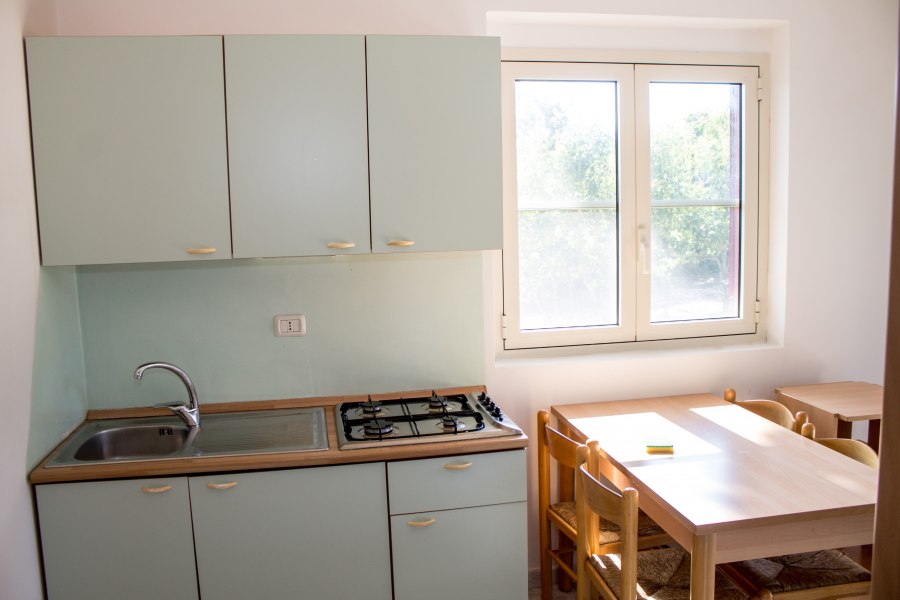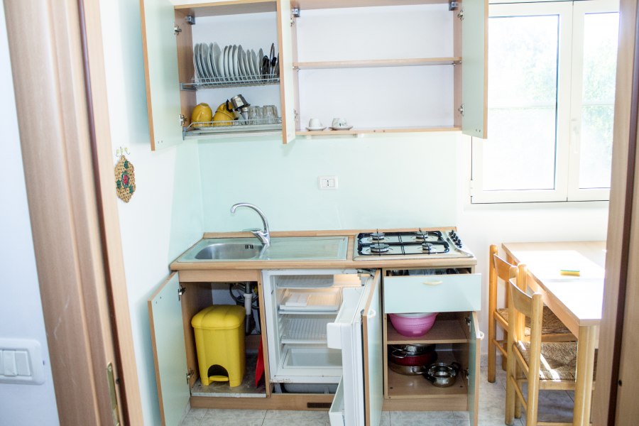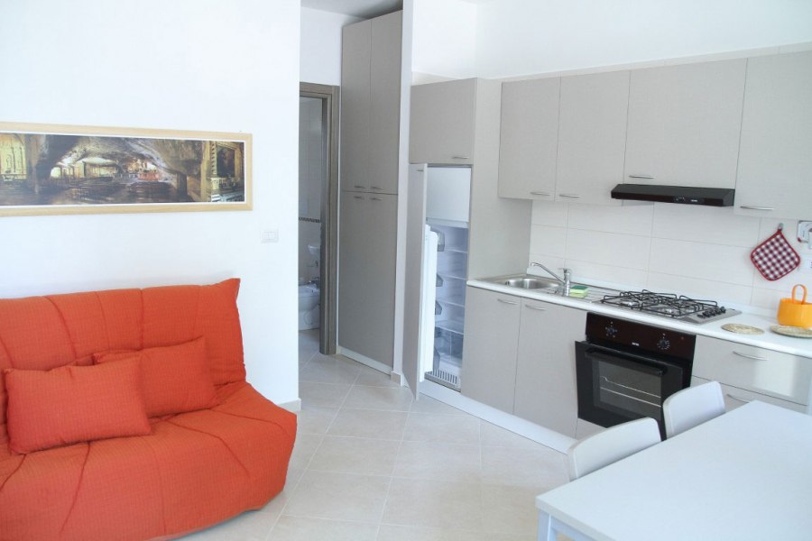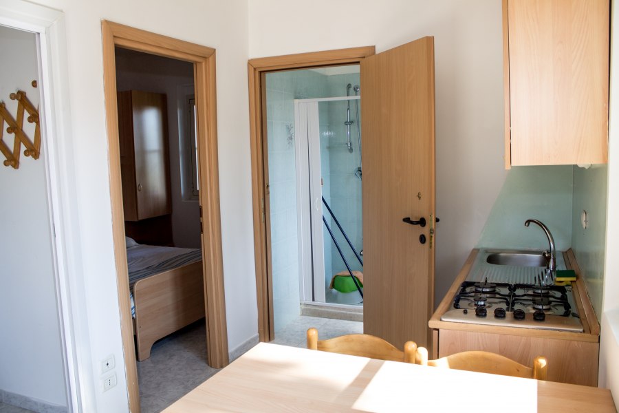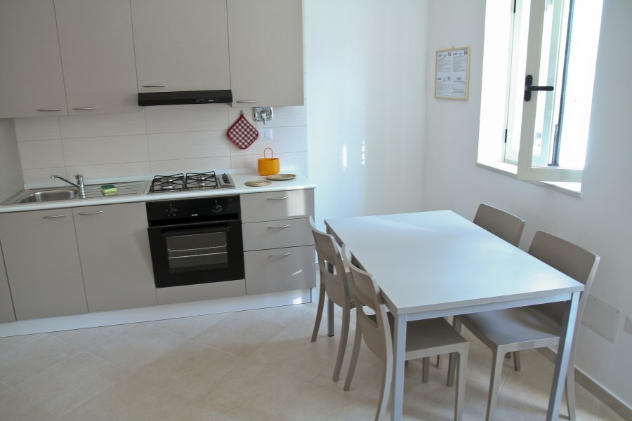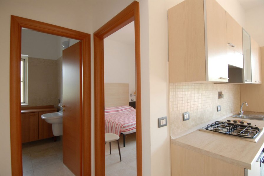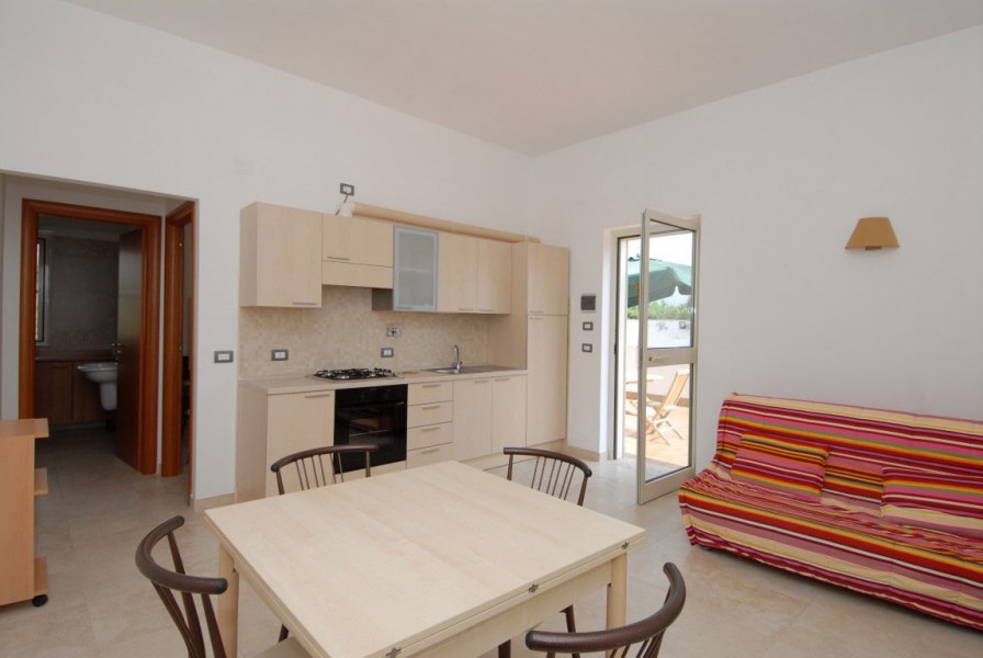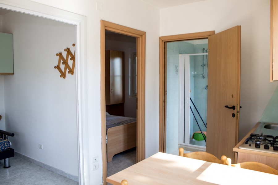 N. 5 appartamenti in muratura da mq25 a mq40, Bilo+Trilo 4 Comfort, disposti su 3 piani, a 100m circa dal mare composti da soggiorno con AC e TV, divano letto matrimoniale o cameretta con letto a castello o letto matrimoniale, camera da letto matrimoniale, angolo cottura e frigorifero con cella freezer, servizi con doccia, esterno gazebo in legno, tavolo, sedie e poltrona sospesa.