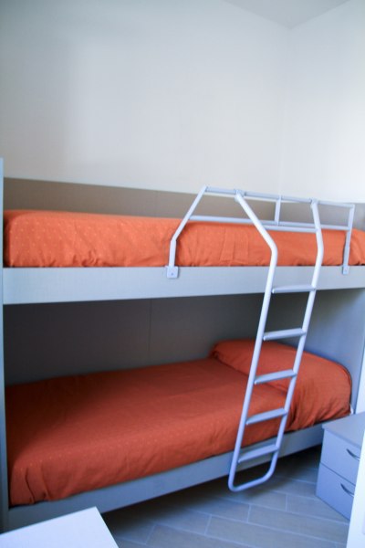N. 44 appartamenti in muratura, di recente rimodernamento, Trilo 4 Standard, piano terra, a 300m circa dal mare composti da soggiorno con AC e TV, angolo cottura e frigorifero con cella freezer, camera da letto matrimoniale, cameretta con letto matrimoniale (chiusura porta a scrigno), servizi con doccia, patio esterno gazebo in legno, tavolo, sedie e poltrona sospesa. 5° letto e culla non disponibile.