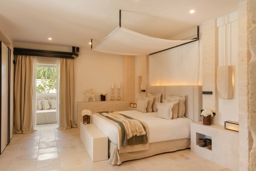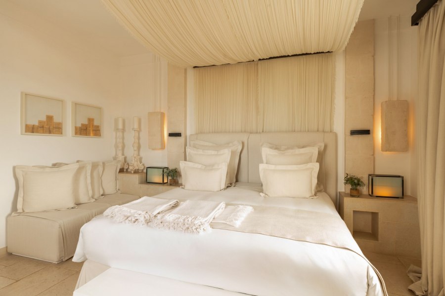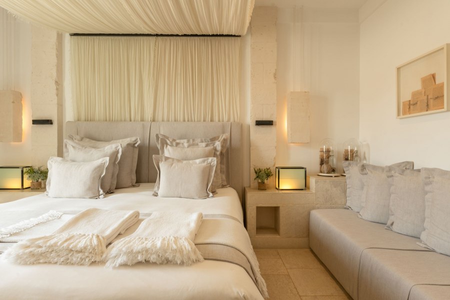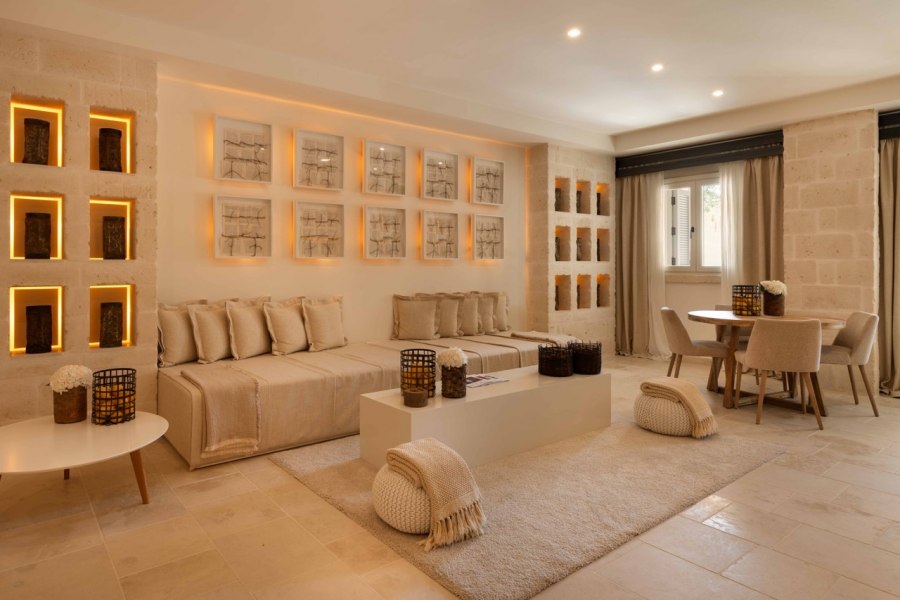 Borgo Egnazia è costruito con il tufo, tipica pietra locale della zona, e si ispira all'architettura delle masserie e dei villaggi rurali pugliesi. L'imponente struttura fonde tradizione e innovazione, contemporaneità e autenticità, semplicità e maestosità, in un armonioso equilibrio.