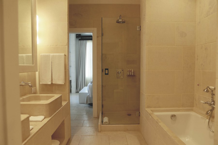 La Corte è l'edificio centrale composto da camere raffinatamente arredate in uno stile che coniuga la tradizione mediterranea e il design contemporaneo. Le camere sono suddivise in diverse categorie: La Corte Bella, La Corte Splendida, La Corte Magnifica e la Suite Egnazia. Ogni camera dispone di letto matrimoniale (o due letti separati), bagni in pietra, balcone. Balconi e terrazze offrono viste sul Mare Adriatico, sugli uliveti millenari della Valle d'Itria o sulle stradine del Borgo. Ciascuna stanza è dotata di tre telefoni di cui uno wireless; vasca da bagno e cabina doccia in vetro separate, doppio lavabo; minibar, cassaforte; internet via cavo, TV (LCD da 32'' a 42'') e Wi-Fi, video e musica on-demand, canali satellitari e un connectivity panel per collegare i propri device alla TV via cavo o bluetooth.