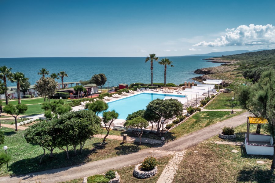 Per le sue caratteristiche naturali, la caletta interna completamente privata della Struttura è adatta a coppie e famiglie con bambini non troppo piccoli, ma soprattutto è adatta a chi ama farsi un bagno nelle splendide acque cristalline tra sabbia e ciottoli, e scogli che delimitano la cala (consigliato l’uso delle scarpette) in un fondale basso e sabbioso che digrada dolcemente verso il mare. Dotata di passerella galleggiante, la caletta si congiunge ad una lunga striscia di sabbia fine ed un esteso prato, entrambi attrezzati con ombrelloni e sdraio (compresi 1 ombrellone e 2 lettini per camera). La proprietà del resort si affaccia anche su un lungo tratto di costa scogliosa con incantevoli insenature raggiungibili anche a piedi. Per gli amanti delle grandi spiagge, sono disponibili alcuni stabilimenti balneari esterni, di sabbia finissima, a circa 600 mt.