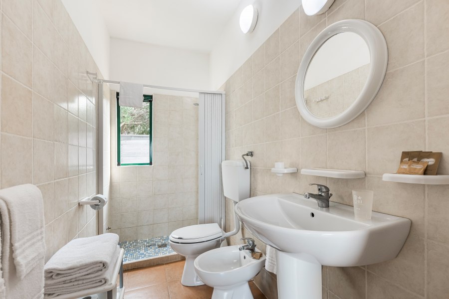Villette: in muratura a schiera, di dimensioni contenute, situate in posizione meno privilegiata ma in zona ombreggiata, immerse nel verde, dotate di letto a castello per il 3°/4° letto. Sono arredate in modo semplice ed essenziale, dispongono di servizi privati con box doccia, aria condizionata, mini frigo, TV 32 pollici, patio, ballatoio o terrazzino attrezzato.