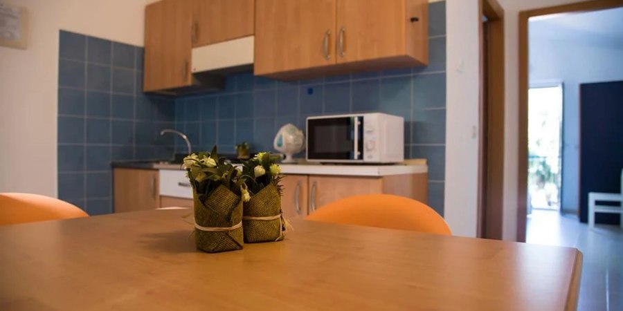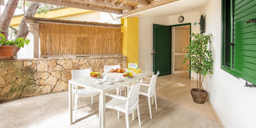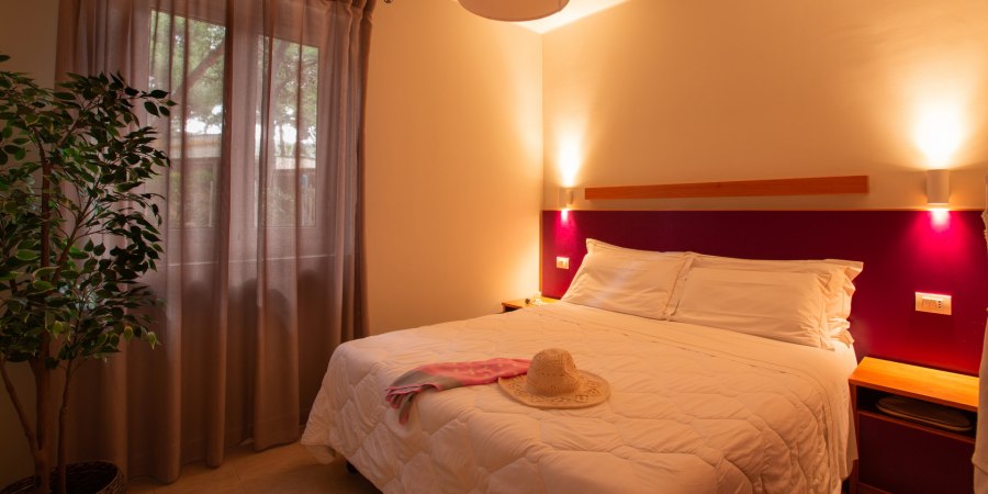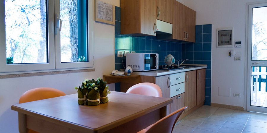 Appartamento Pineta 4: dispone di una camera con letto matrimoniale, di una camera con due letti singoli, 1 Bagno con doccia, una zona giorno con blocco cucina e di una veranda esterna attrezzata. Alcuni appartamenti hanno la zona giorno dotata di un divano letto. Dotazioni: Phon, Cassaforte, Telefono, Microonde, Nr. 1 Posto auto assegnato, nr. 1 tv da 32''. Distanza dalla spiaggia: Circa 300 - 800 metri in collina. Aria Condizionata: Indipendente. Pulizia: Non inclusa. Biancheria: in dotazione prima fornitura biancheria da letto e da bagno. Cambio settimanale incluso solo per i soggiorni da 14 notti.