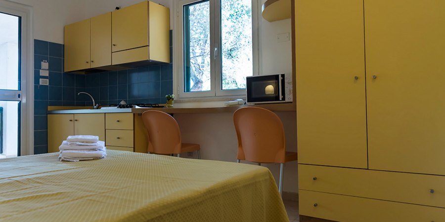 Classic Parco: dispone di una camera con letto matrimoniale, 1 Bagno con doccia, una zona giorno con blocco cucina e di un terrazzo esterno attrezzato. Dotazioni: Phon, Cassaforte, Telefono, Microonde, Nr. 1 Posto auto assegnato, nr. 1 tv da 32''. Distanza dalla spiaggia: Circa 250 - 350 metri in pianura. Aria Condizionata: Centralizzata. Pulizia: Inclusa 1 pulizia per soggiorno minimo di 7 notti. Biancheria: in dotazione prima fornitura biancheria da letto e da bagno. Cambio settimanale: incluso solo per i soggiorni da 14 notti.